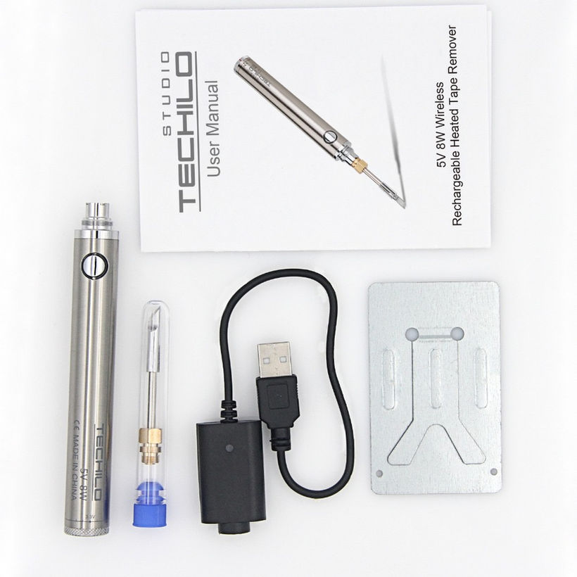 - The removal process does not require excessive pressure. Heat can be adjusted. Make sure not to hold the metal tip on the tape for an extended period of time to prevent melting.
